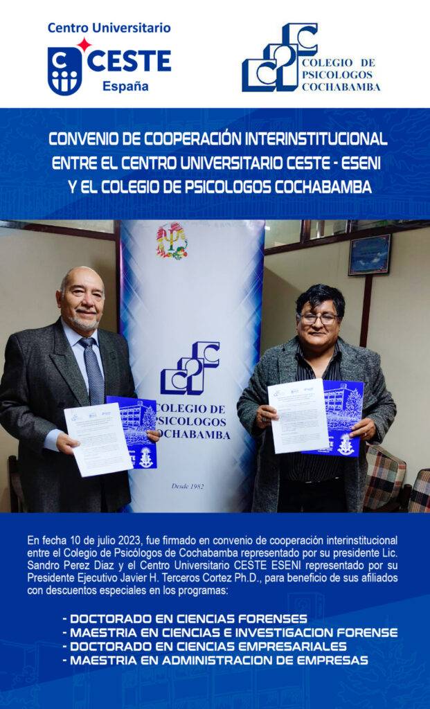 Convenio de Cooperación Interinstitucional entre Ceste – Eseni y el Colegio de Psicólogos CochabambaPor esenizav / julio 17, 2023